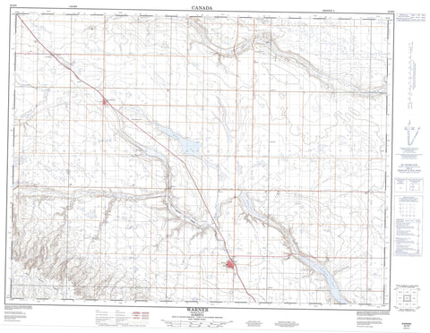 082H08 Warner Canada topo map, 1:50,000 scale