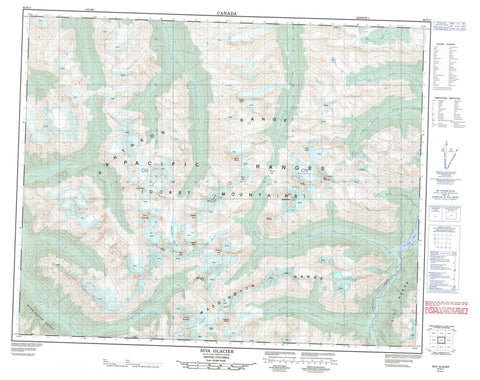 092N11 Siva Glacier Canada topo map, 1:50,000 scale