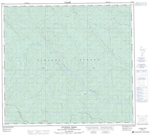 Topo map sheet 094G01 Julienne Creek covers the following places: