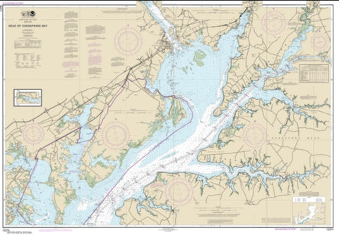 East View Map Link (EVML), a certified NOAA and NGA print on demand printer; provides mariners with up-to-date National Oceanic and Atmospheric Administration (NOAA) approved nautical charts. Our Head of Chesapeake Bay nautical chart (Map Index 12274) is printed using high resolution, heavy weight and acid free paper. All charts are printed with the latest Notice to Mariners (NTMs), and meet United States Coast Guard and international carriage requirements for commercial and recreational vessels. Waterproof options are also available. All NOAA nautical charts ship rolled, and are printed by East View Map Link, LLC.