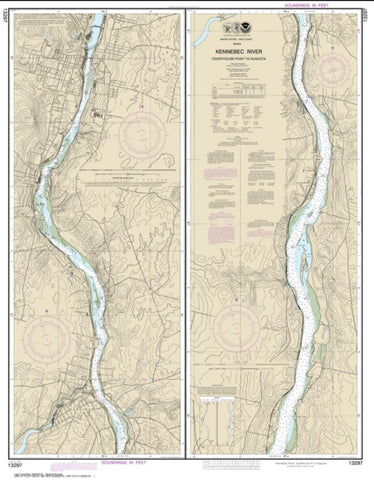 East View Map Link (EVML), a certified NOAA and NGA print on demand printer; provides mariners with up-to-date National Oceanic and Atmospheric Administration (NOAA) approved nautical charts. Our Kennebec River Courthouse Point to Augusta nautical chart (Map Index 13297) is printed using high resolution, heavy weight and acid free paper. All charts are printed with the latest Notice to Mariners (NTMs), and meet United States Coast Guard and international carriage requirements for commercial and recreational vessels. Waterproof options are also available. All NOAA nautical charts ship rolled, and are printed by East View Map Link, LLC.