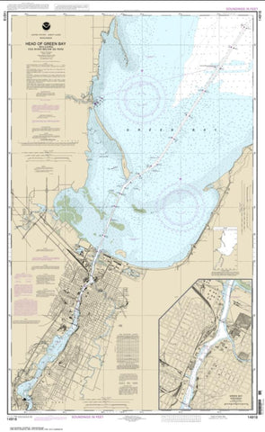 East View Map Link (EVML), a certified NOAA and NGA print on demand printer; provides mariners with up-to-date National Oceanic and Atmospheric Administration (NOAA) approved nautical charts. Our Head of Green Bay, including Fox River below De Pere; Green Bay nautical chart (Map Index 14918) is printed using high resolution, heavy weight and acid free paper. All charts are printed with the latest Notice to Mariners (NTMs), and meet United States Coast Guard and international carriage requirements for commercial and recreational vessels. Waterproof options are also available. All NOAA nautical charts ship rolled, and are printed by East View Map Link, LLC.