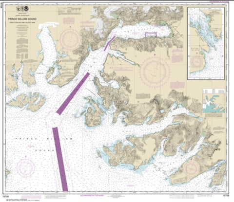East View Map Link (EVML), a certified NOAA and NGA print on demand printer; provides mariners with up-to-date National Oceanic and Atmospheric Administration (NOAA) approved nautical charts. Our Prince William Sound-Port Fidalgo and Valdez Arm; Tatitlek Narrows nautical chart (Map Index 16708) is printed using high resolution, heavy weight and acid free paper. All charts are printed with the latest Notice to Mariners (NTMs), and meet United States Coast Guard and international carriage requirements for commercial and recreational vessels. Waterproof options are also available. All NOAA nautical charts ship rolled, and are printed by East View Map Link, LLC.