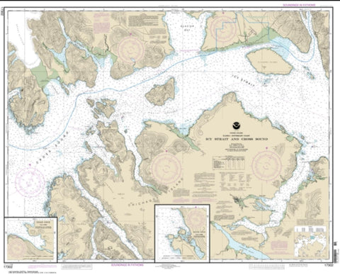 East View Map Link (EVML), a certified NOAA and NGA print on demand printer; provides mariners with up-to-date National Oceanic and Atmospheric Administration (NOAA) approved nautical charts. Our Icy Strait and Cross Sound; Inian Cove; Elfin Cove nautical chart (Map Index 17302) is printed using high resolution, heavy weight and acid free paper. All charts are printed with the latest Notice to Mariners (NTMs), and meet United States Coast Guard and international carriage requirements for commercial and recreational vessels. Waterproof options are also available. All NOAA nautical charts ship rolled, and are printed by East View Map Link, LLC.