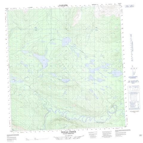 Topo map sheet 105K01 Tenas Creek covers the following places: