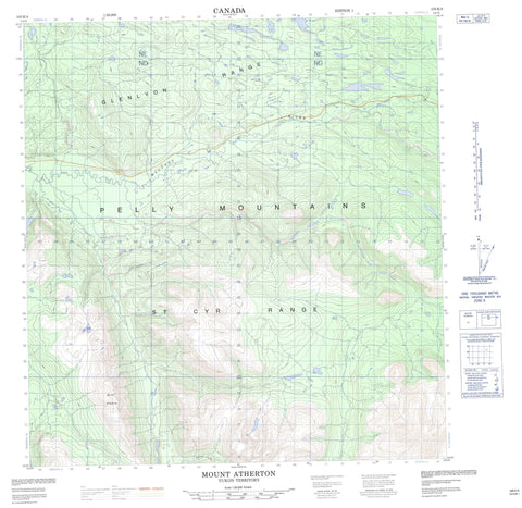 Topo map sheet 105K04 Mount Atherton covers the following places:
