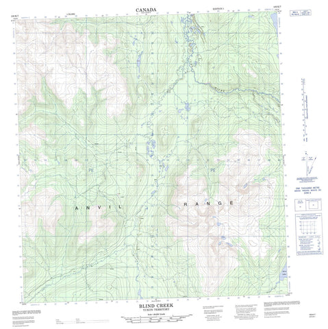 Topo map sheet 105K07 Blind Creek covers the following places: