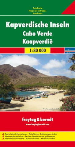Road map of the Cape Verde islands, islands include; Santaigo, Fogo, Brava, Maio, Santo Antao, Sao Nicolau, Sao Vicente, Boavista and Sal with legend. Insets of photographs and location diagram.