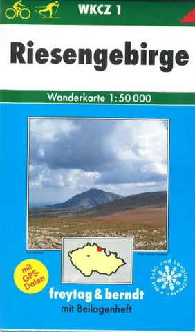 Krkonoše, Karkonosze, Riesengebirge, or Giant Mountains hiking map, WKCZ 1. In German and Czech (legend also translated to English). Map printed on one side. Comes with index and information booklet.