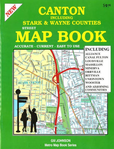 Canton street map book covers Wayne, Stark, Carroll, and Holmes Counties in 66 color maps. Includes 12 pages of index and several blank pages for notes.