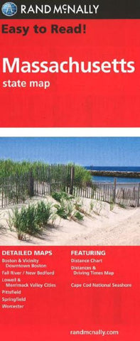 The map includes datailed maps of Boston & vicinity/downtown, Fall River/ New Bedford, Lowell& Merrimack Valley Cities, Pittsfield, Worcester, Cape Cod National Seachore, and also distance chart and driving times map.