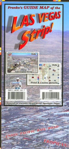 Get this map before you book your trips reservations. Learn where all attractions are, hotels and transportation (airport, monorail and cabs). Side one shows a large aerial photograph of the strip with names of places. Side 2 shows a map of the strip with photographs and descriptions of places of interest.
