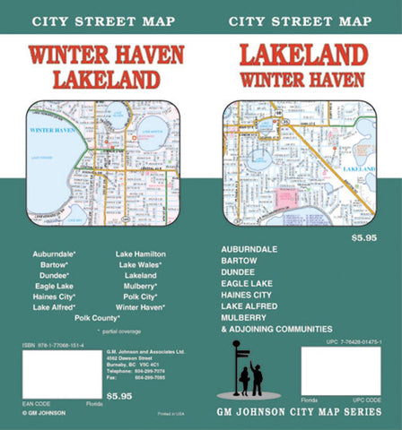 City map of Lakeland with legend, city and points of interest index. On reverse index continued with map of Winter Haven.