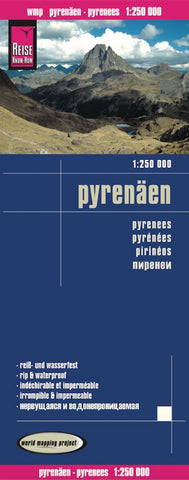 Road map of Pyrenees with legend, city and places of interest index. This map appears in the map series entitled World Mapping Project for Reise Know-How.