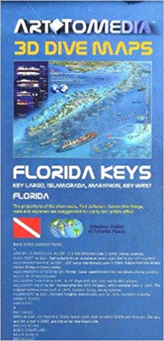 Florida Keys waterproof 3D Diving Map. Double sided dive map covers the Florida Keys area from Key Largo to Dry Tortugas National Park at scale approx. 1:140,000. Numerous sites of shipwrecks are indicated. Major wrecks are presented by 3D pictures. Selected wrecks are portrayed by precise drawings and technical specification. Also, an extensive list of dive sites with descriptions. Printed on synthetic paper, this map is waterproof so it can be used underwater.