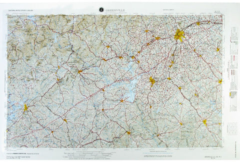 This raised relief map covering Greenville, South Carolina (sheet NI 17-4) uses USGS/DMA 1:250,000 toporaphic maps as a base.