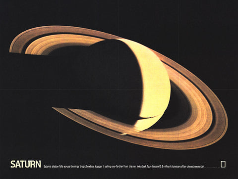 This image of Saturn, taken from Voyager 1s closest encounter with the ringed planet, was published in the July 1981 issue of National Geographic. It appeared with a map of the solar system and the article Voyager 1 at Saturn: Riddles of the Rings.