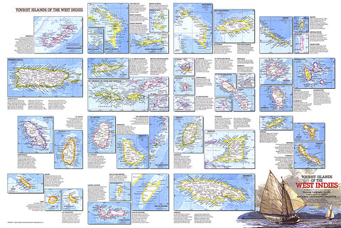 Featuring maps and information on over thirty islands in the Caribbean, the Tourist Islands of the West Indies map is half of a two-map set highlighting the unique tourist destinations to be found in the region. Published in National Geographic Magazine in February 1981, it accompanied the West Indies and Central America map.