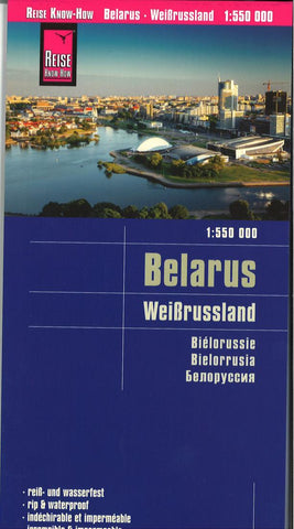 Belarus at 1:550,000 on an indexed road map with topographic and tourist information, printed on light, waterproof and tear-resistant synthetic paper and published by Reise Know-How as part of their highly acclaimed World Mapping Project. The map is double-sided to provide the best balance between a good scale and a convenient size sheet.