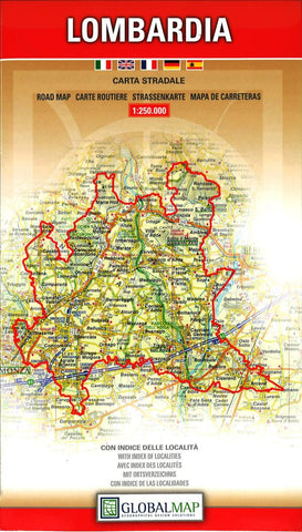 Folded road map of Lombardia, Italy. Features multilingual legend and index on reverse.