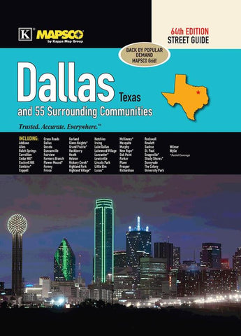 Before braving the roads of Dallas and its 55 surrounding communities, make sure your vehicle is stocked with our most up-to-date Dallas Mapsco Street Guide. With over 2,000 updates, revisions, and additions from the previous year, this Mapsco atlas is still one of the most trusted navigation tools on the market. Each street guide contains easy-to-read street-level detailed maps and a comprehensive street index, with block numbers, ZIP codes, city/county names, and Mapsco grid listings.