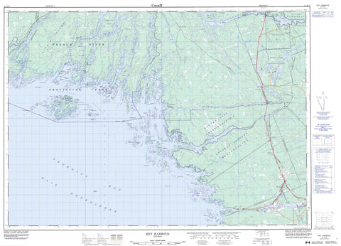 Topo map sheet 041H15 Key Harbour covers the following places: