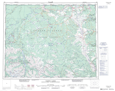 092O Taseko Lakes Canada topo map, 1:250,000 scale